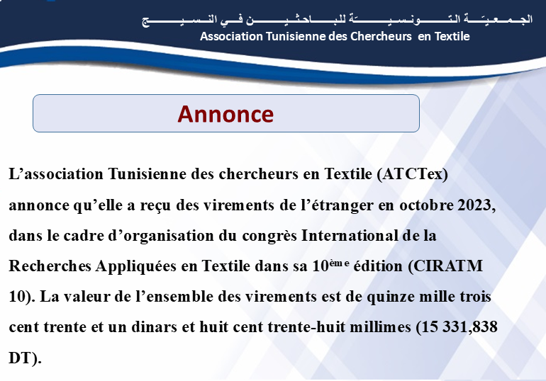 Annonce : L’ATCTex a reçu des virements de l’étranger dans le cadre d’organisation du CIRATM 10.